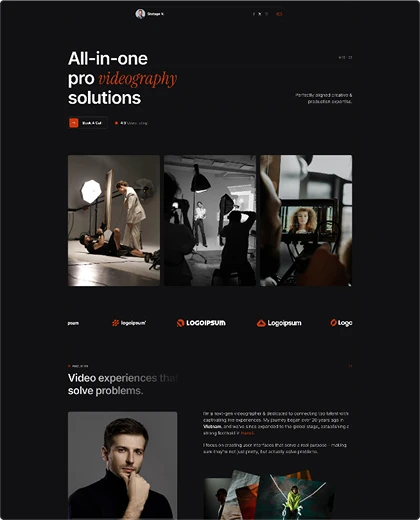 Import a complete property website with one click, or combine 1000+ section blocks to craft a unique showcase for your photography & videography portfolio.